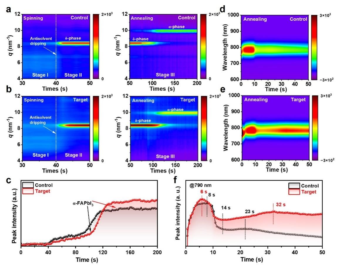 缺陷钝化是提升钙钛矿太阳能电池效率与稳定性的关键策略之一。然而,通过简便方法对钙钛矿薄膜上表面、下表面以及本体内部的多重缺陷进行同步钝化仍旧是一个巨大挑战。基于此,本研究团队提出了一种三重钝化策略,旨在利用单一钝化剂实现对上述不同位置缺陷的全面钝化。具体而言,多功能分子三(2,2,2-三氟乙基)磷酸酯(TTFP)被引入作为反溶剂添加剂。凭借TTFP在钙钛矿薄膜中自上而下的独特梯度分布特性,该策略能够有效抑制界面及本体缺陷。此外,TTFP不仅可同时对阳离子和阴离子缺陷进行钝化,还对钙钛矿的结晶动力学产生显著影响,促进高结晶性钙钛矿薄膜的形成,并显著增大晶粒尺寸。最终,基于TTFP钝化的反式钙钛矿太阳能电池实现了25.69%的光电转换效率,且稳定性显著提升。该工作成功实现了全面缺陷钝化,为高效稳定钙钛矿太阳能电池技术的发展奠定了坚实的实验基础与理论基础。