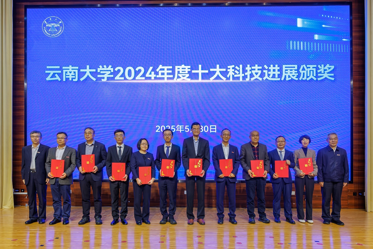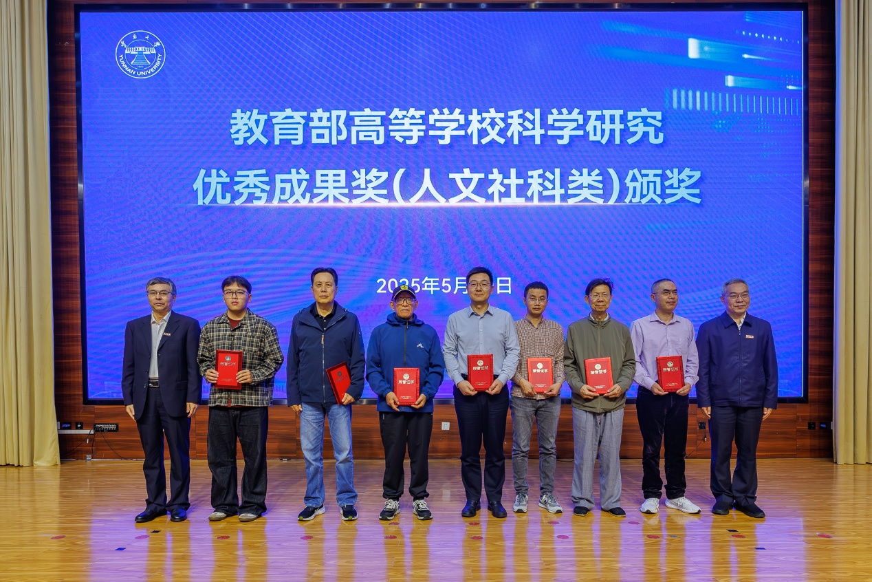 校党委书记周学斌、校长马文会共同为“教育部高等学校科学研究优秀成果奖(人文社科类)”的我校获奖者、云南大学2024年度十大科技进展获奖者颁奖。